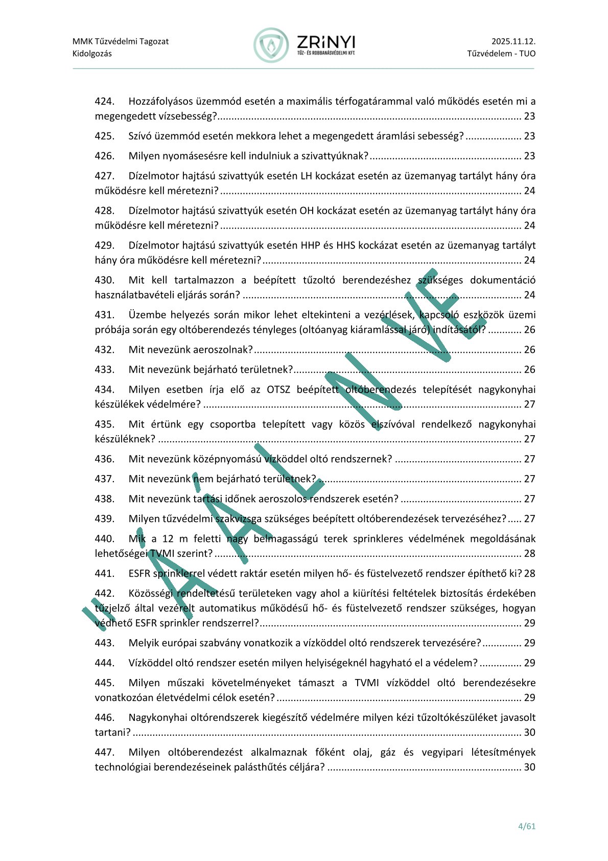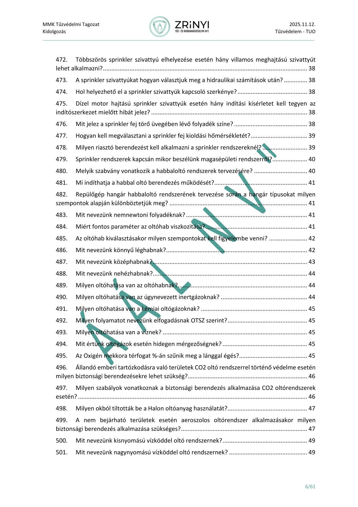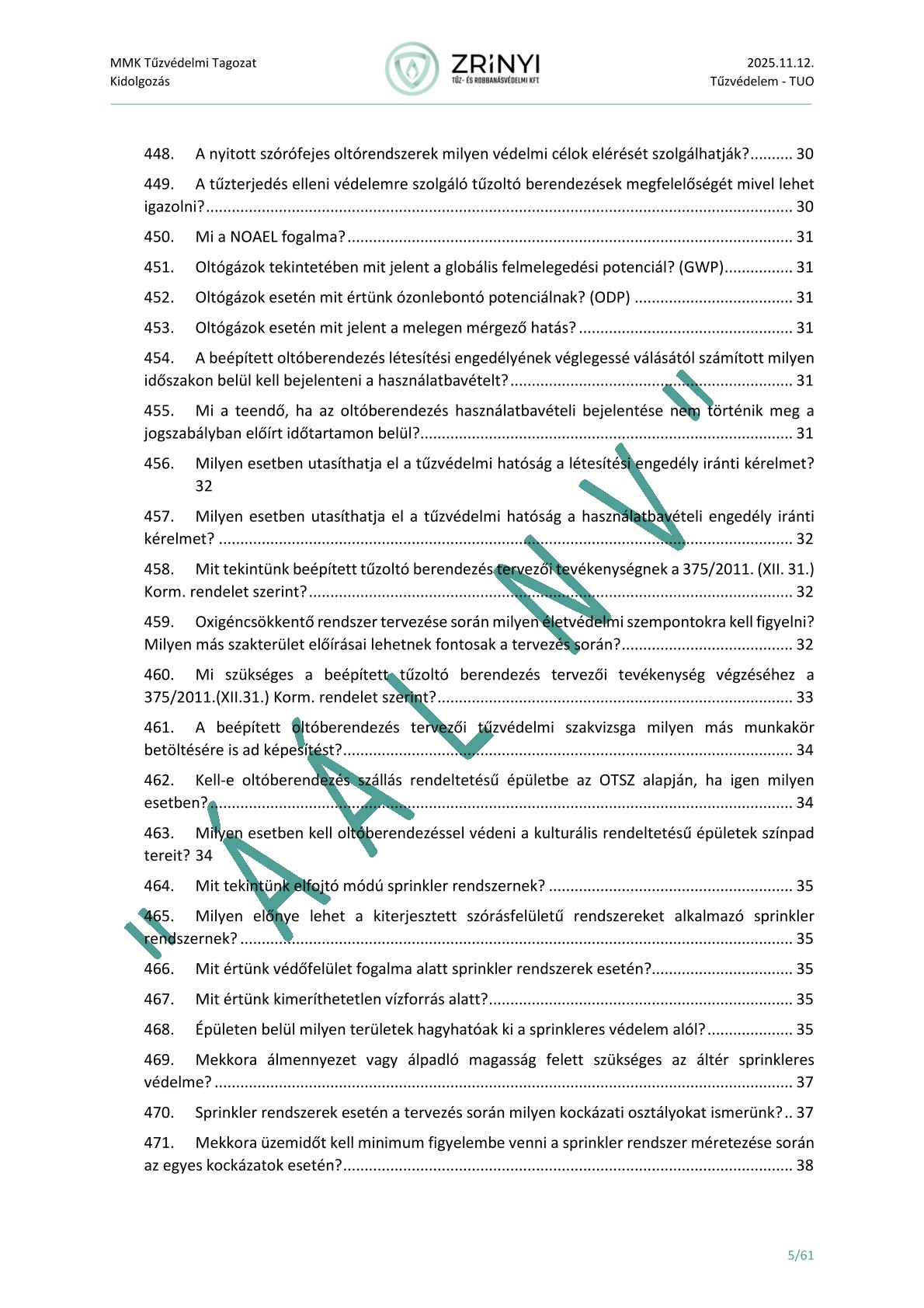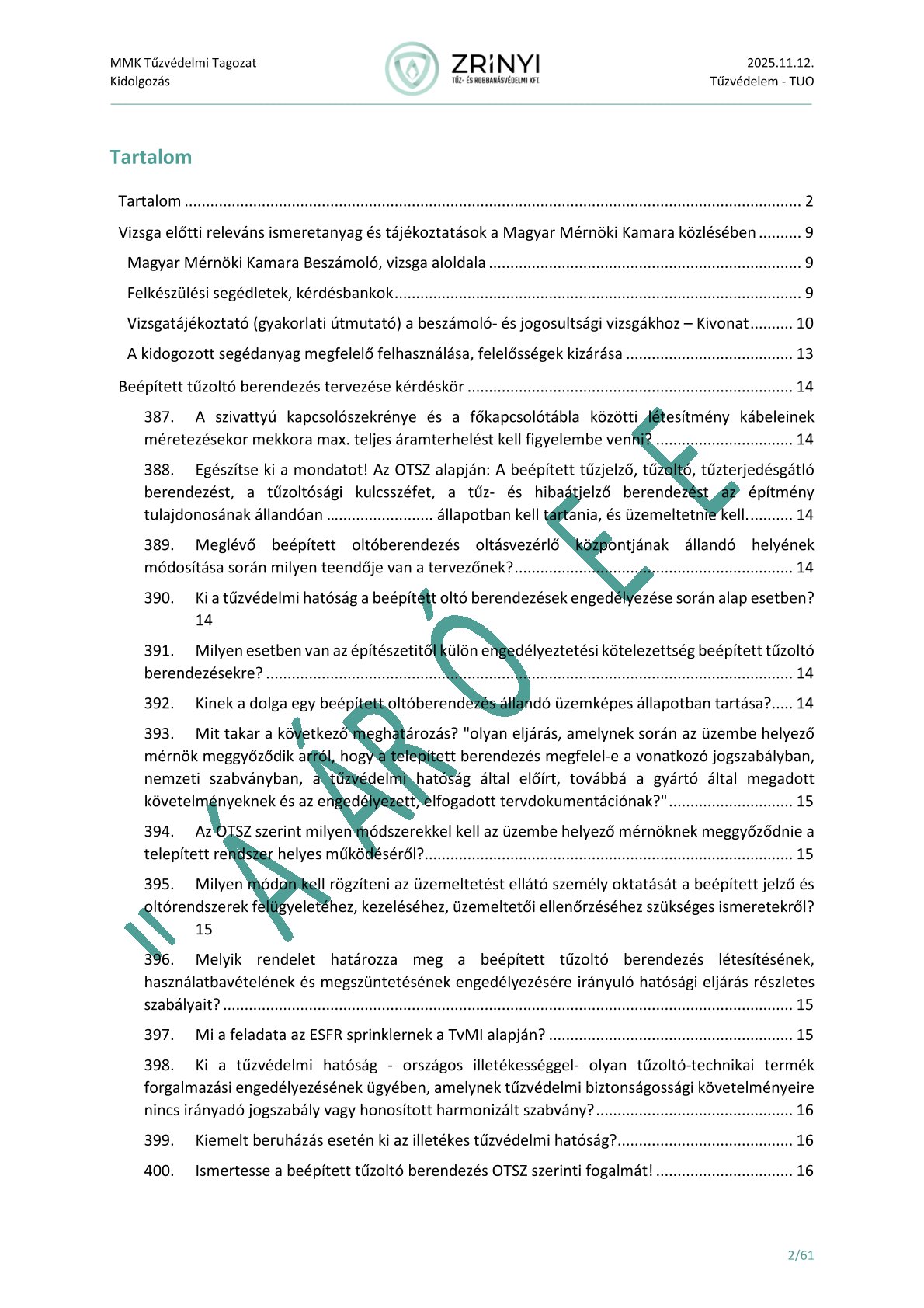 TUÉ; Tűzvédelem szakterület; Építésügyi tűzvédelmi tervezői kérdéskör REV.6 20251112 kidolgozott felkészülési segédlet