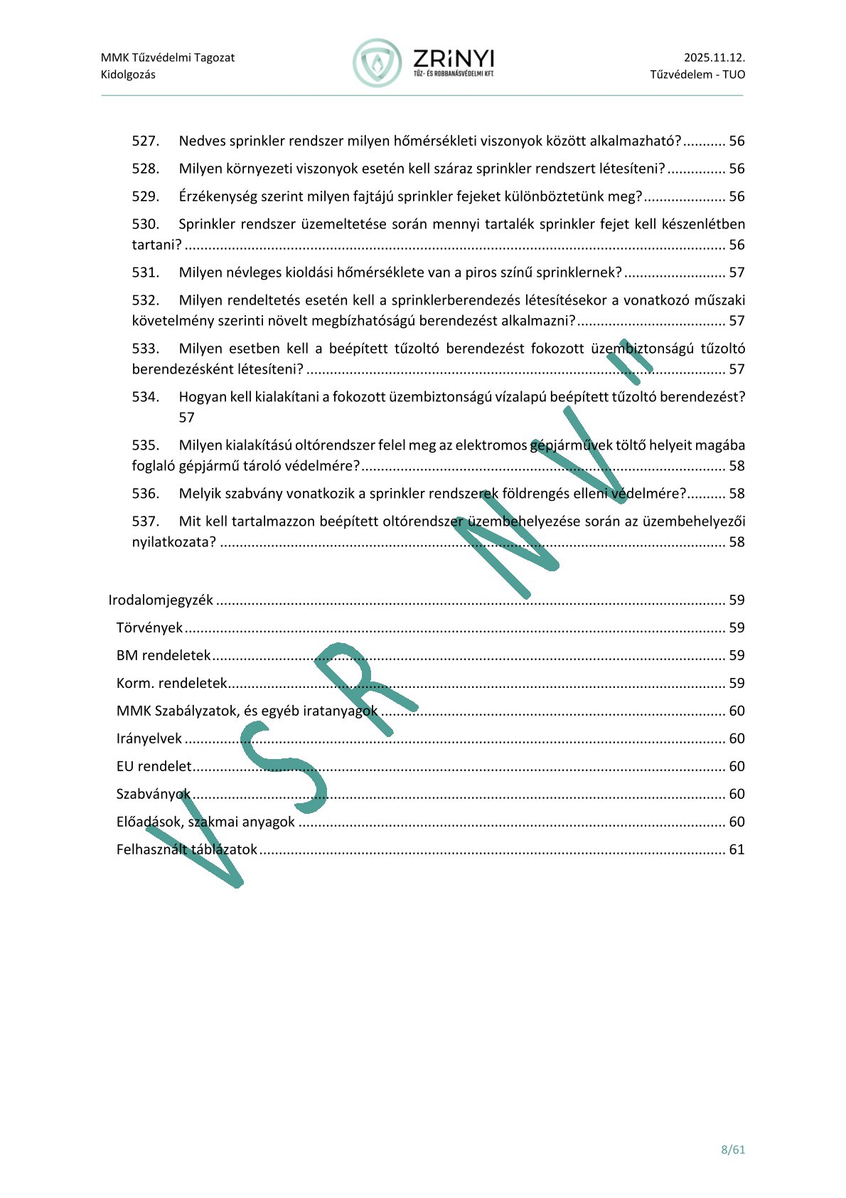 A ZRÍNYI Tűz- és Robbanásvédelmi Kft. fenntart minden további feldolgozással és/vagy terjesztéssel kapcsolatos jogot. Előzetes írásos hozzájárulás nélkül tilos a dokumentum(ok) egészének vagy annak részeinek feldolgozása; másolása; értékesítése. A jogosulatlan felhasználás jogi következményeket vonhat maga után.